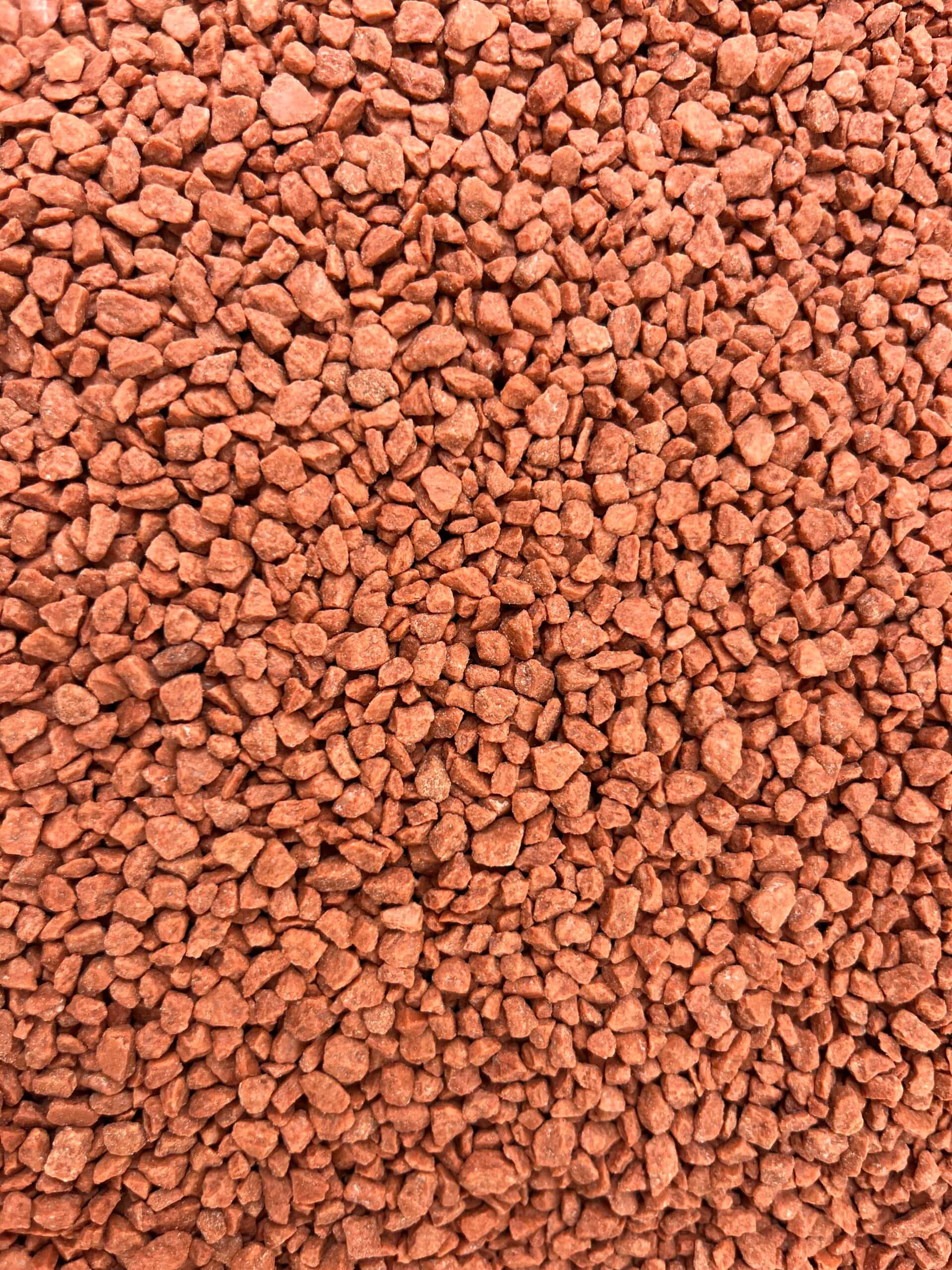 | Apariencia | Gránulos de forma irregular, el color varía del rosa al color marrón rojizo |
